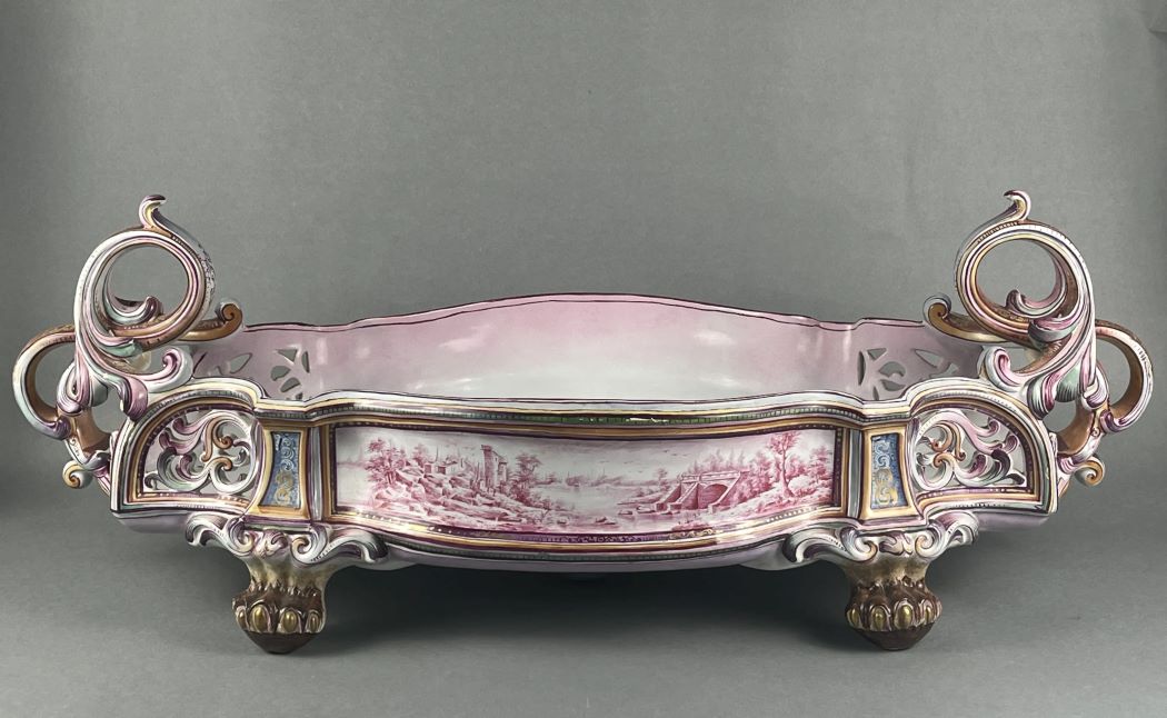 Rien moins que 256 lots vont être dispersés et Artlorrain.com va vous présenter les créations les plus spectaculaires de la Manufacture de LUNEVILLE-SAINT CLEMENT (Keller et Guérin) comme la spectaculaire jardinière qui figure en tête de cet article, estimée entre 600 et 800 euros.