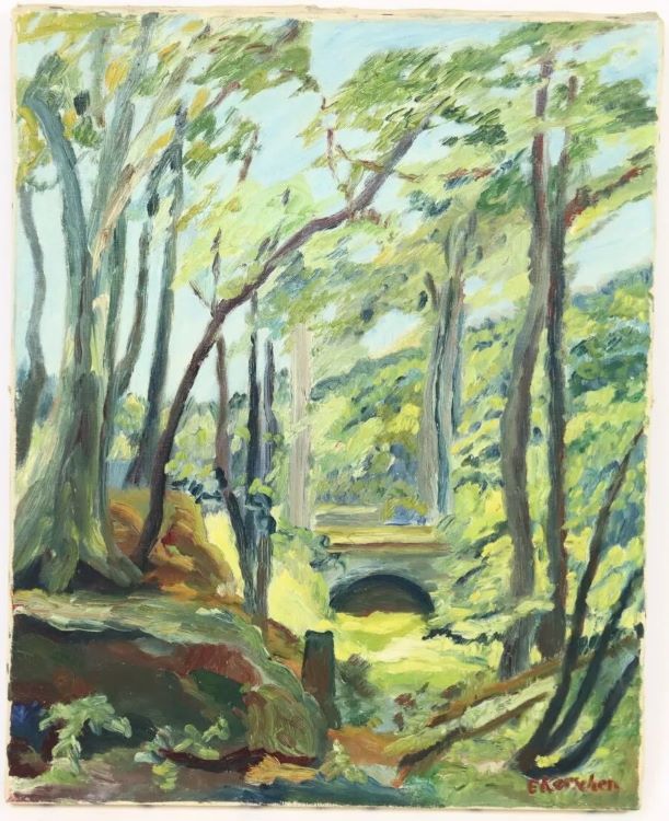 Née le 17 janvier 1906 à Maxéville, aux portes de Nancy, Élisabeth Simone KERSCHEN est une artiste profondément enracinée dans sa Lorraine natale. Cette terre de lumière, de nature et de tradition picturale a nourri toute son œuvre. À travers ses huiles sur toile, elle célèbre la beauté des paysages lorrains, la quiétude des natures mortes et l'intimité du quotidien. Kerschen déploie une palette colorée subtile et vibrante, dans laquelle dominent les tons chauds, les verts nuancés, les ocres dorés et les bleus profonds. Sa maîtrise de la couleur contribue à donner à ses œuvres enracinées une atmosphère profonde et expressive.