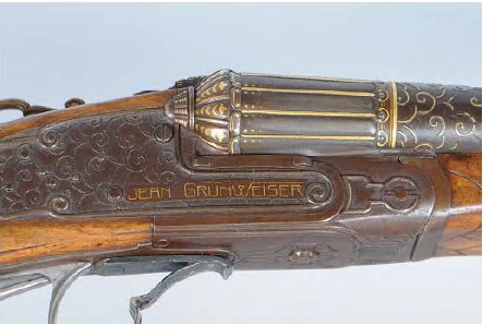 Lors du salon de 1936 il y avait une vitrine (5028) contenant 3 fusils à crosses ciselés( légués par la fille du ciseleur au château-musée de Gien chasse, histoire et nature du val-de-Loire (Loiret) en 2017. Ils ornent actuellement la vitrine destinée au fusil dans la salle de chasse à tir ) ,incrustées d'or,argent,gravés patinés et une autre(5029) contenant un vase.les N° 5028-5029 sont notés sur la courte notice de la société des artistes.