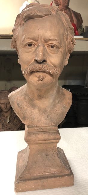 buste sur piedouche en terre cuite, signée E. BAILLY et datée 1880 à l'arrière.