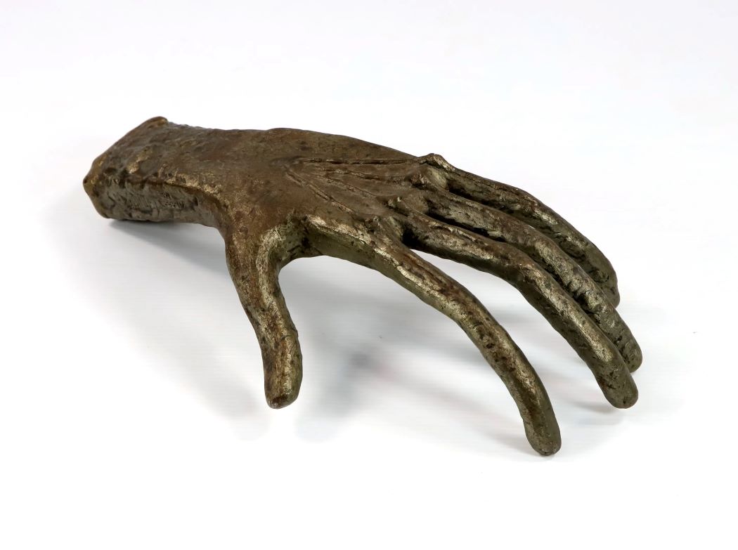 On trouvera plusieurs huiles du messin Albert MARKS qui a si bien peint sa ville, accompagné par Gilles FABRE, Amilcar ZANNONI dont je vous présente cette sculpture bien caractéristique de son oeuvre : "Main gauche" en alliage de métal, estimée entre 100 et 200 euros. On pourra trouver aussi un "Main droite" !
